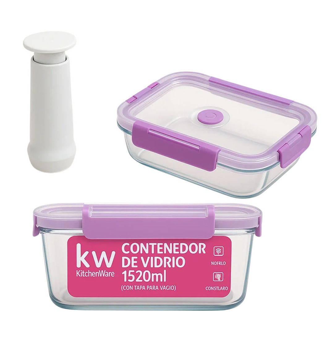 Set Contenedores Herméticos con Tapa y Bomba Manual para Extracción al Vacío - KW
