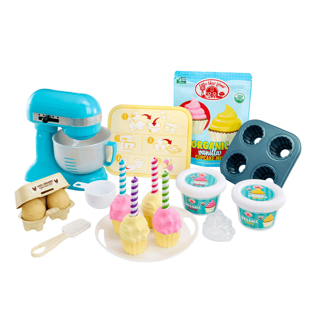 Con las masas Make-It! Mix, los ingredientes se moldean fácilmente en cupcakes. Esta mezcla no comestible ofrece una experiencia táctil y creativa para que los pequeños panaderos experimenten con una creación de comida realista.