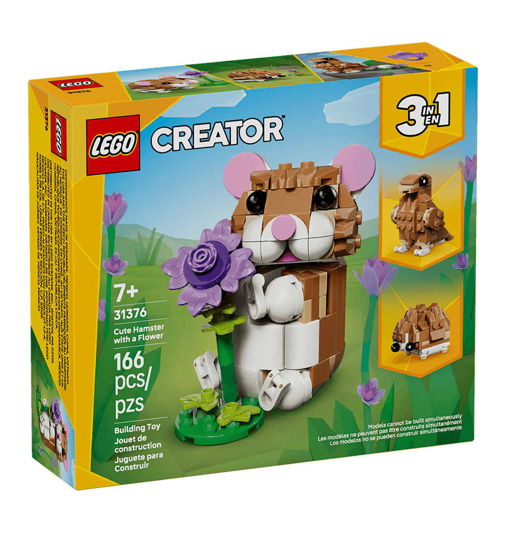 Las niñas y los niños con pasión por los animales se lo pasarán genial interpretando divertidas historias con el juguete LEGO Creator “3 en 1” Lindo Hámster con Flor (31376), que les permite construir 3 animales alternativos con los mismos ladrillos.