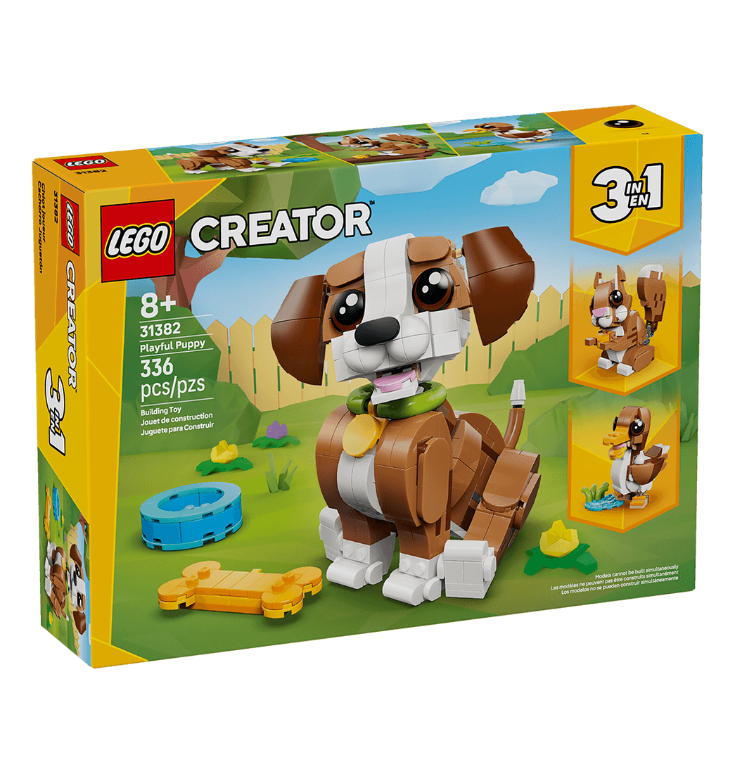 ¡El set de construcción LEGO Creator “3 en 1” Simpáticos Animales: Cachorro Juguetón (31382) te permitirá interpretar divertidas historias! Este simpático juguete para niños y niñas a partir de 8 años les ofrece 3 opciones de construcción diferentes con los mismos ladrillos.