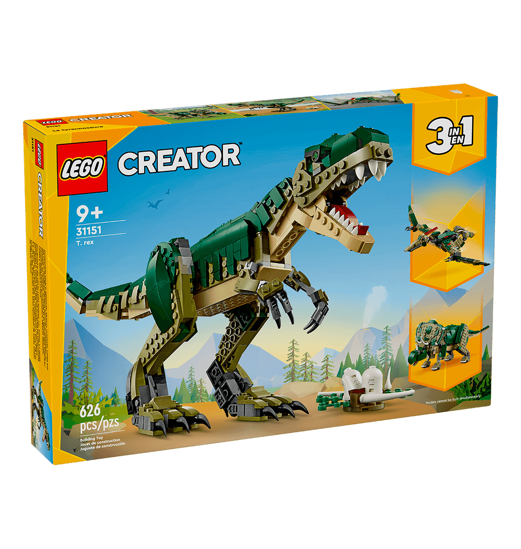 ¡Viaja atrás en el tiempo para interpretar increíbles aventuras con el dinosaurio de juguete T. rex (31151)! Los niños y niñas pueden mover la cabeza, los pies, la cola, la mandíbula, las patas delanteras y traseras e incluso los dedos y los talones de este Tyrannosaurus rex articulado para colocarlo en diferentes poses.