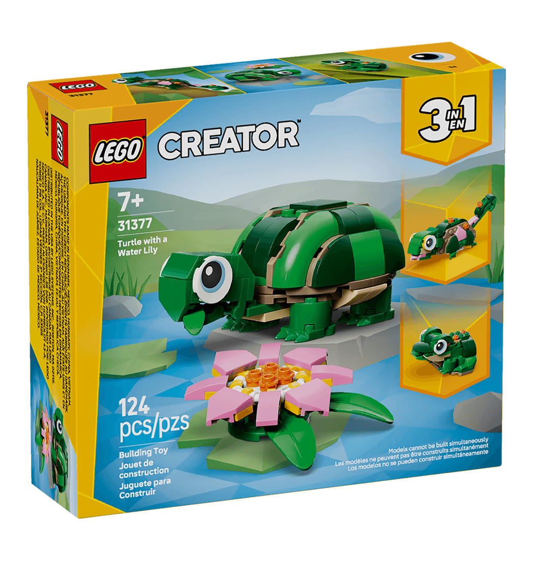 El set de construcción LEGO Creator “3 en 1” Tortuga con Flor de Nenúfar (31377) para niñas y niños a partir de 7 años les permite interpretar creativas historias con animales. Este simpático juguete ofrece 3 opciones de construcción diferentes con los mismos ladrillos.