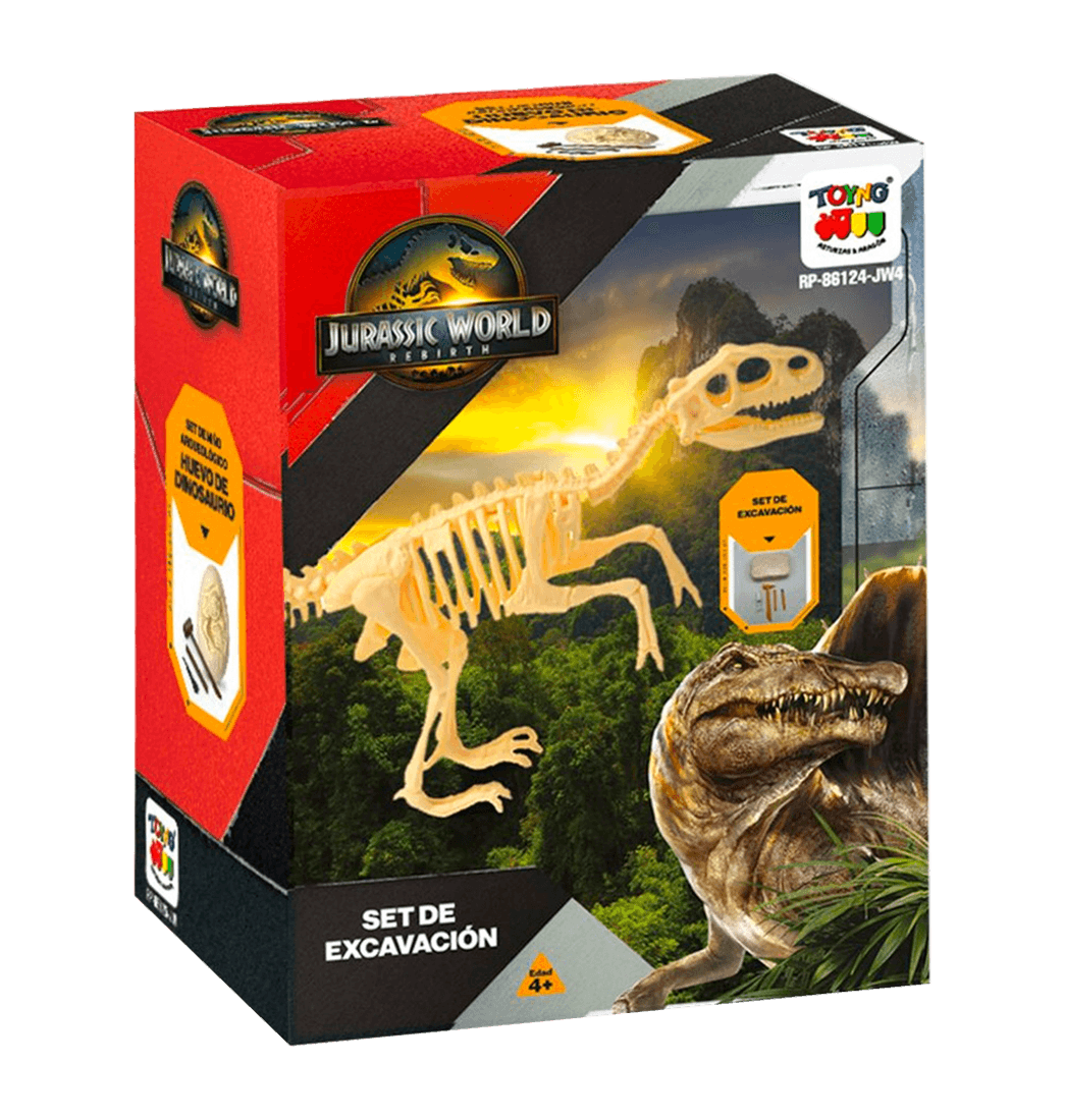 Cuidado! Un fósil prehistórico está esperando ser descubierto... El Set de Excavación Jurassic World Movie convierte a cualquier niño en un auténtico paleontólogo listo para sacar a la luz restos de criaturas que dominaron la Tierra hace millones de años. Con herramientas reales adaptadas a su tamaño, este set invita a vivir una experiencia educativa, inmersiva y cargada de emoción.