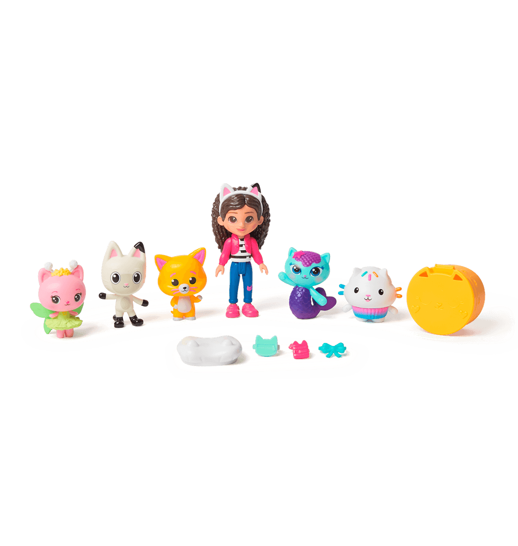 Este set de figuras de Gabby's Dollhouse incluye seis figuras coleccionables y un accesorio sorpresa. Con los personajes que viste en la película, acompaña a Gabby y sus amigos a divertirse y recrea increíbles aventuras.