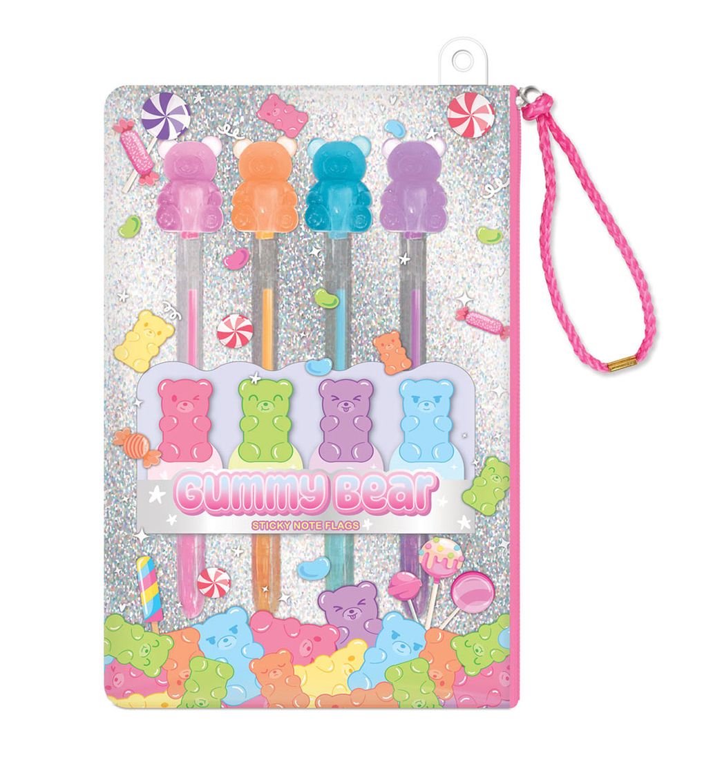 Incluye: 1 bolsa reutilizable; 4 bolígrafos de gel perfumados con adorables adornos 3D; 4 blocs de notas adhesivas; 1 hoja de pegatinas.