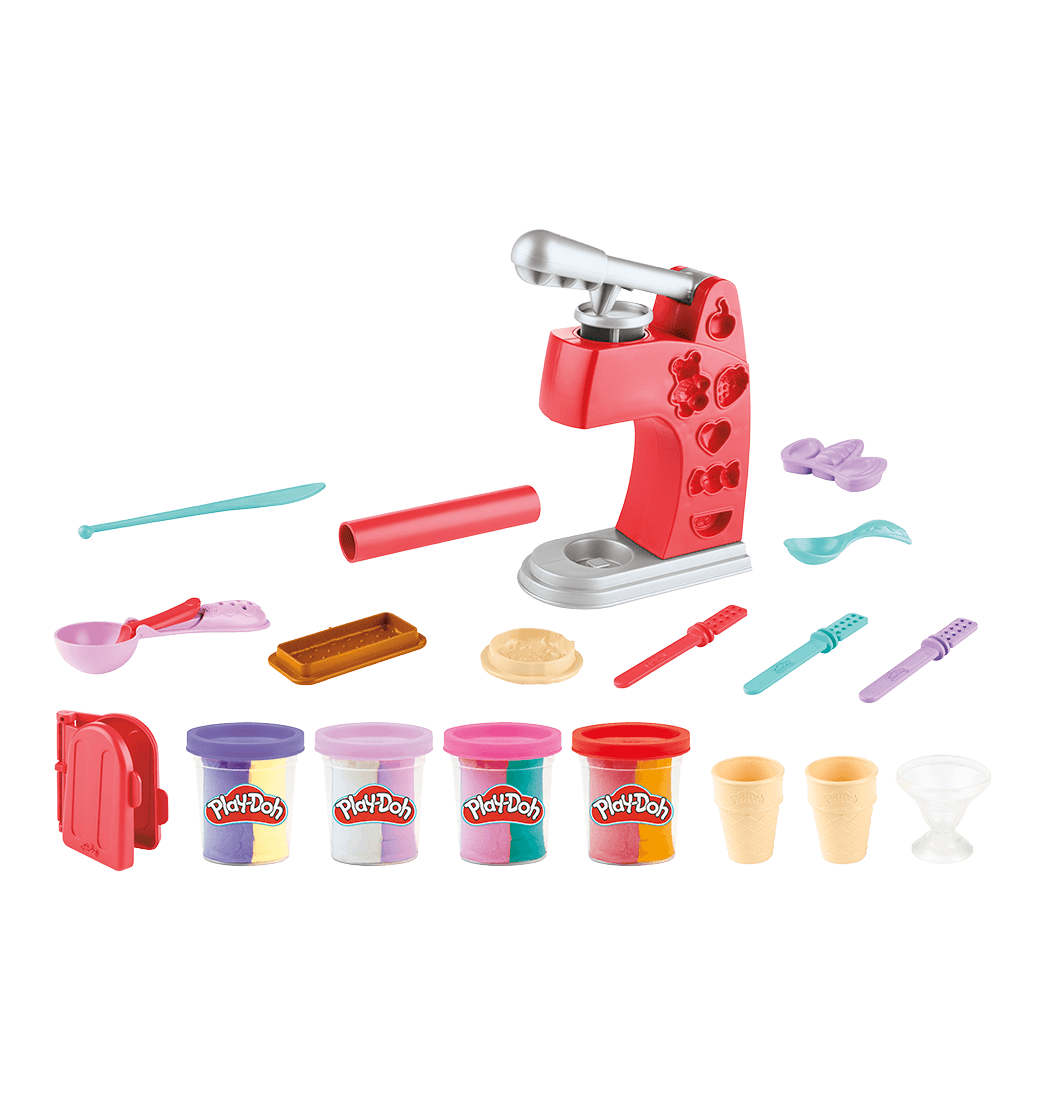 ¡Imagina un mundo de unicornios y helados de juguete con el set Play-Doh Helados deliciosos! La máquina de helados de juguete, los conos, moldes y más te dan la oportunidad de crear una increíble variedad de postres helados y decorados de juguete. ¡Dales un toque mágico a tus creaciones con el sello de cuerno y la oreja de unicornio! Las 4 latas de dos colores de masa para moldear Play-Doh te ofrecen 8 colores para comenzar. ¡Anímate y llévalo ahora!