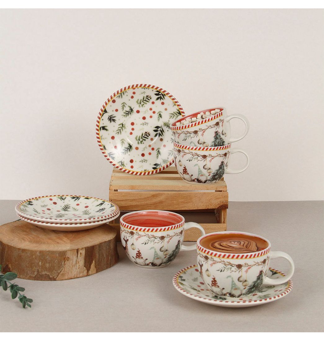Disfruta la dulzura de la navidad con el Set de Té Ilusión. Este juego de 4 puestos y 8 piezas está decorado con encantadoras ilustraciones de renos, y árboles de navidad que transmiten alegría y ternura en cada detalle. Perfecto para acompañar tus tardes de té, café o chocolate caliente, su diseño festivo crea una atmósfera mágica para compartir en familia o con amigos y hacer de cada momento un recuerdo especial en estas fiestas. ¡Anímate y adquiérelo ahora!.