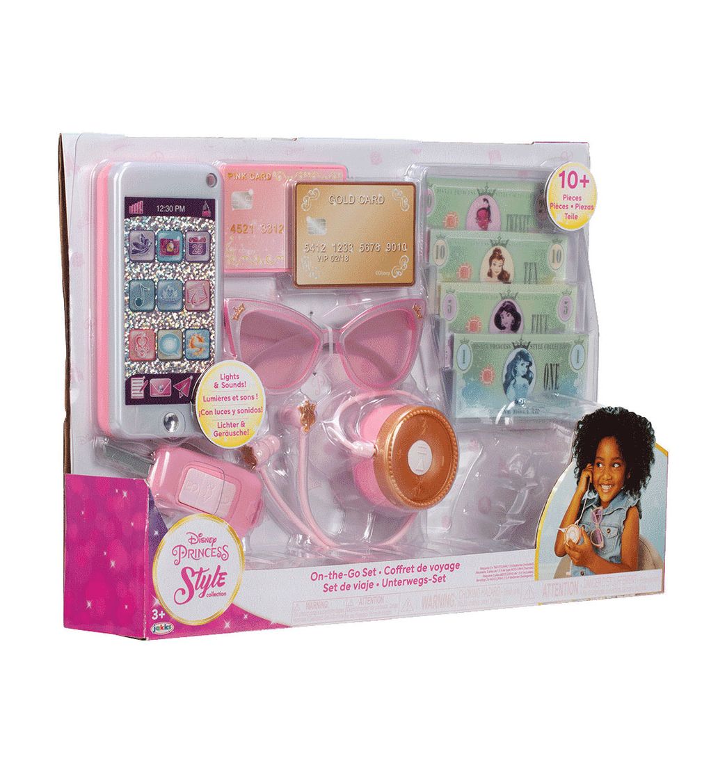 Fabuloso Set Disney Princesas que incluye increíbles y divertidos accesorios que seguro las niñas amaran. El teléfono cuenta con sonidos y luces realistas, además, incluye unas gafas de sol y audífonos de juguete.