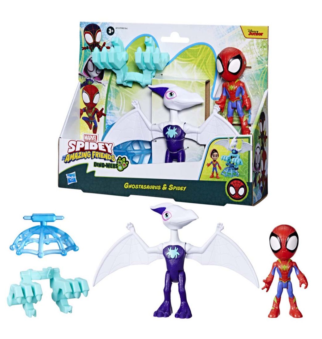 ¡Busca todos los personajes y otros juguetes Spidey and His Amazing Friends para tener más aventuras arácnidas Dino-Webs! (Cada uno se vende por separado. Sujeto a disponibilidad.)