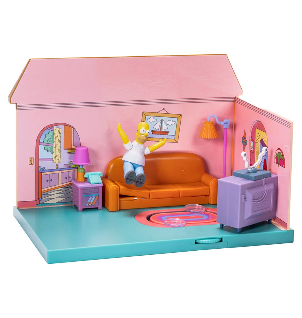 Los Simpsons son la familia más icónica de todos los tiempos y ahora tienes la oportunidad de coleccionar y divertirte con las figuras y sets de juego de estos entretenidos personajes. Este Set incluye la famosa sala de la casa de los Simpsons junto a la Figura de Homero y otros accesorios.