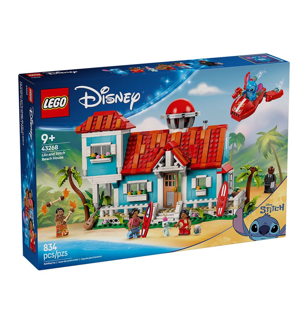Los peques vivirán asombrosas aventuras en el set de construcción LEGO Disney Casa en la Playa de Lilo y Stitch (43268). Con un modelo de casa en la playa de 2 plantas, este juguete Disney tiene numerosos detalles de la película y sorpresas ocultas para jugar sin parar, como 2 tablas de surf, la muñeca de Lilo Scrump, un tocadiscos, un bote de cristal, una nave espacial construible y 5 minifiguras de personajes LEGO Disney: David, Lilo, Sr. Burbuja, Nani y Stitch.