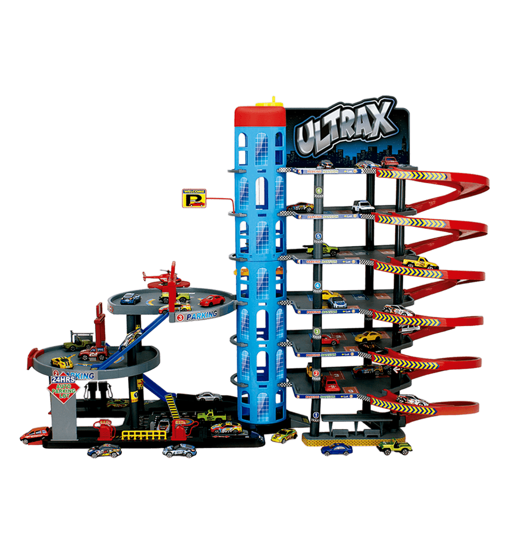 Vive emocionantes aventuras con este fabuloso Estacionamiento de 7 Niveles de Ultrax. Este sorprendente set de juego te brinda una experiencia de juego emocionante y es ideal para los amantes de los carros.