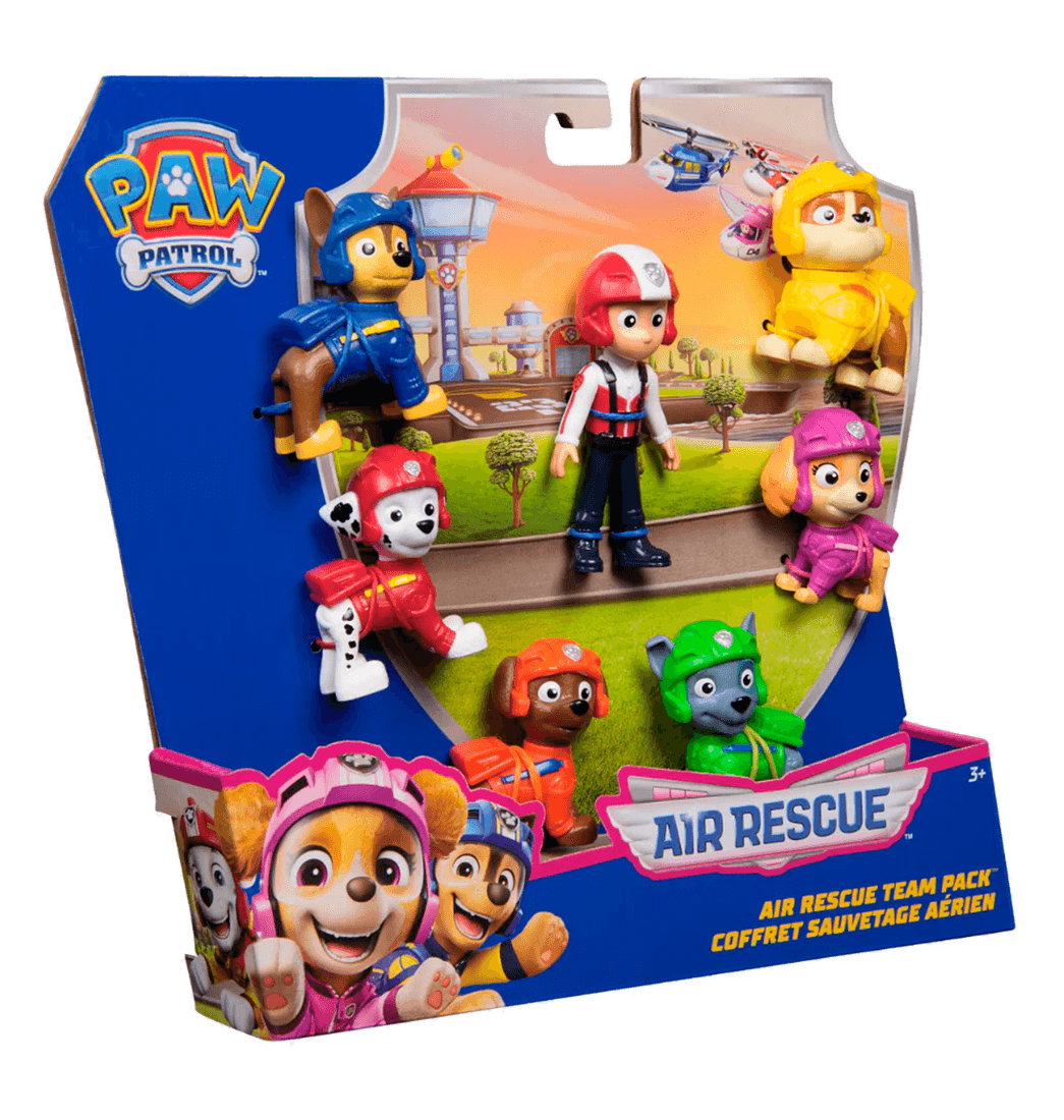 Crea tus propias aventuras de Patrulla Canina con este increíble Pack de Regalo de Figuras Coleccionables de Paw Patrol Rescate Aéreo. Este set de figuras de juguete de la Patrulla Canina contiene 7 figuras coleccionables: Chase, Ryder, Marshall, Rocky, Rubble, Zuma y Skye, vestidos con sus nuevas chaquetas y cascos de vuelo de Rescate Aéreo, tal como aparecen en la serie.