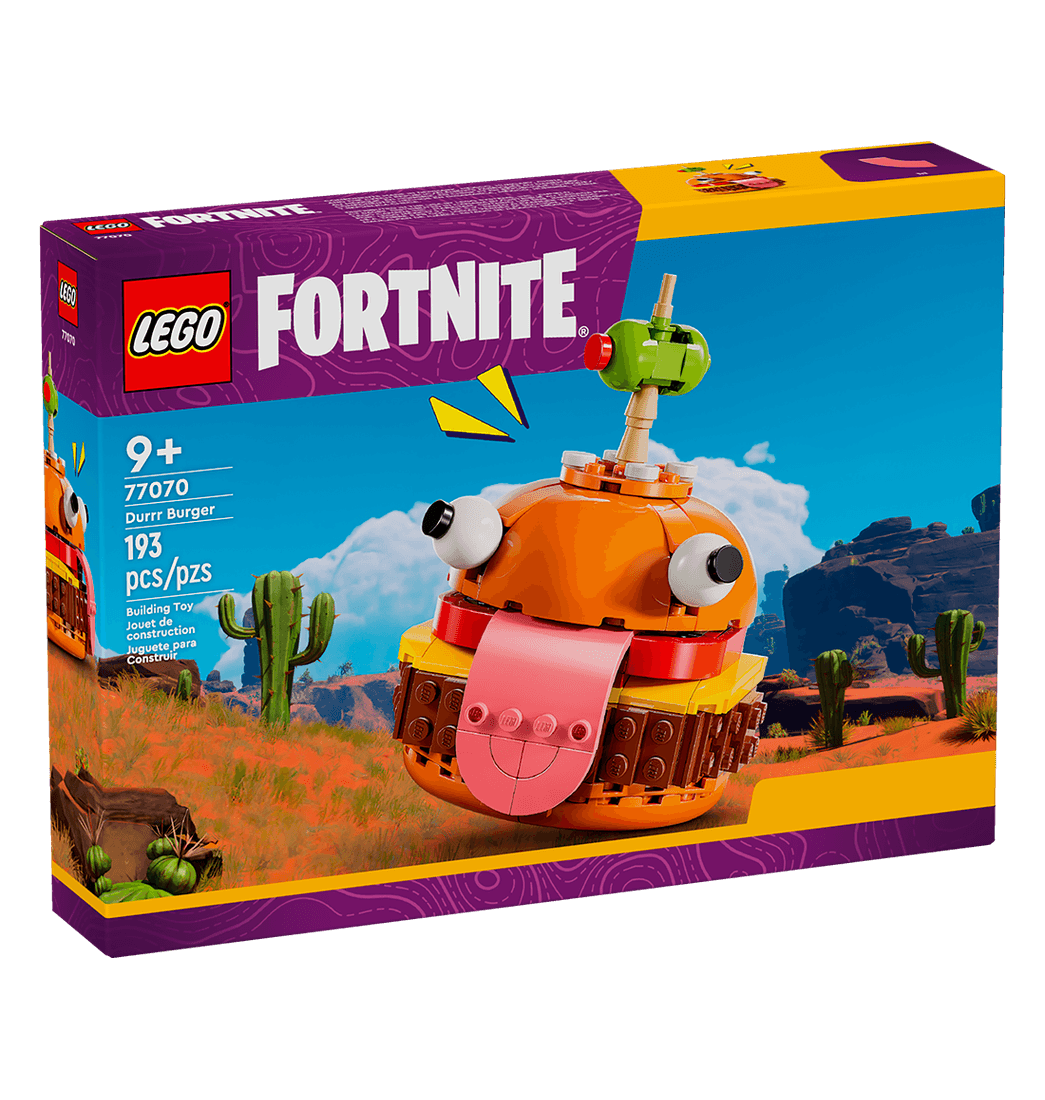 Alimenta la creatividad con la Hamburrrguesa LEGO Fortnite (77070), un fantástico set de construcción para gamers a partir de 9 años. Basado en el videojuego LEGO Fortnite, el set ofrece a los fans la oportunidad de crear un modelo de exposición de Hamburrrguesa, la icónica mascota del restaurante del universo Fortnite.
