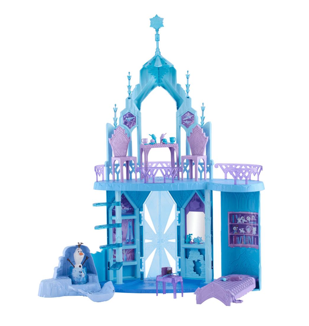 Iconos de copos de nieve distribuidos por el castillo guían a los niños para canalizar sus poderes inspirados en Elsa y empujar, jalar o girar para activar cuatro funciones mágicas, ¡incluyendo "crear" una figura de Olaf con nieve, tal como lo hace Elsa en la película! Más de veinte accesorios enriquecen el juego narrativo, incluyendo muebles y comida de mentira.