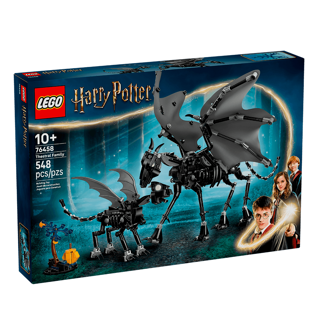 Haz volar la imaginación de tu peque con estas figuras LEGO Harry Potter de la primera familia de Thestrals construible (76458). Un mágico regalo de cumpleaños para niñas, niños y fans de Harry Potter a partir de 10 años, el set incluye figuras de un Thestral adulto y su cría para fomentar el juego basado en el cuidado.