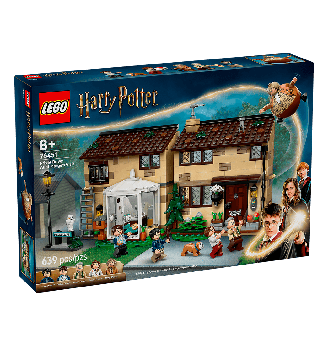 Revive la visita de tía Marge al número 4 de Privet Drive en Harry Potter y el prisionero de Azkabán con este juego coleccionable LEGO Harry Potter (76451). La casa construible es una recreación del hogar de la familia Dursley que cuenta hasta con la terraza interior y que se abre para jugar cómodamente dentro.