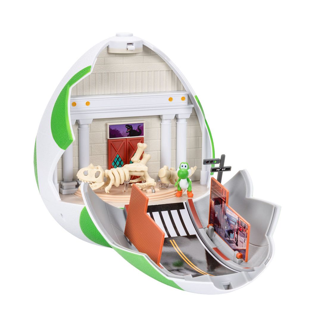El Playset Huevo de Yoshi de The Super Mario Galaxy Movie es un increíble huevo gigante de Yoshi que se transforma en un escenario de juego de doble vista. Disfrazado como un huevo verde completamente cerrado, sus dos paneles se abren para revelar escenas de la película donde conocemos a Yoshi y descubrimos cómo viaja para encontrarse con Mario. ¡Una aventura en cada giro!
