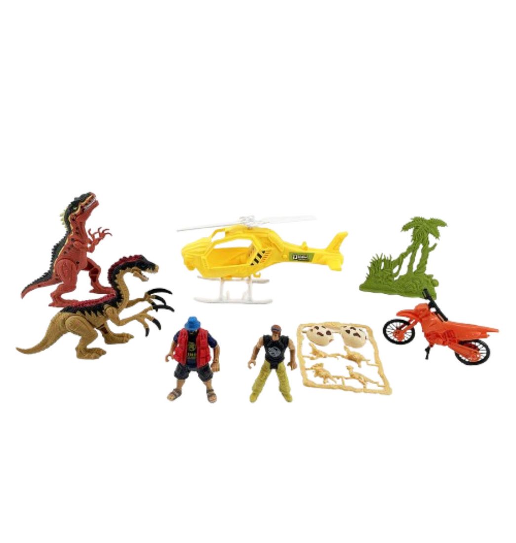 Incluye 2 dinosaurios, 2 arqueólogos, 2 vehículo y accesorios.