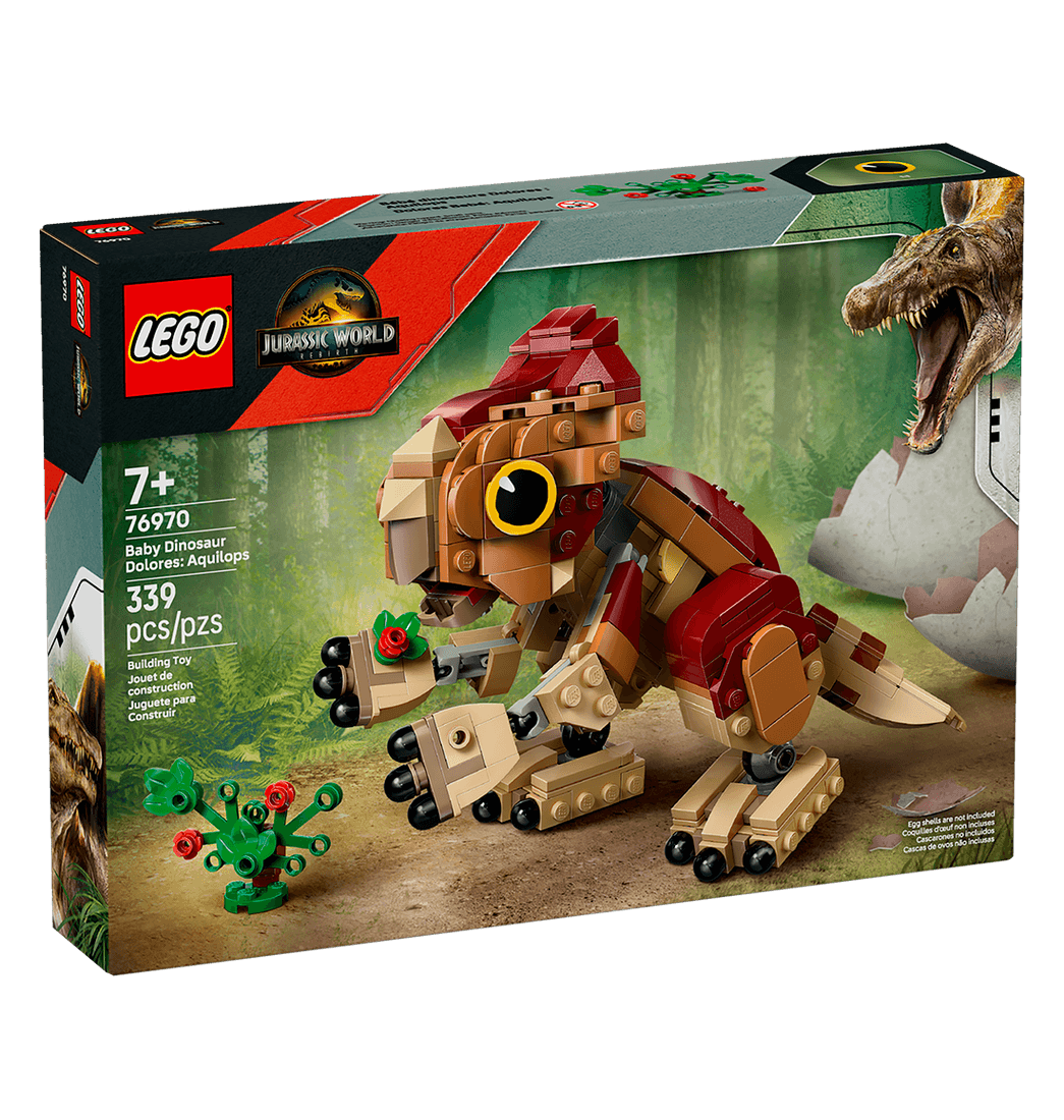 A los peques y los fans de Jurassic World que quieran empezar o ampliar una colección de dinosaurios les esperan un montón de aventuras con el divertido set de juguetes LEGO Jurassic World Dolores Bebé: Aquilops (76970). Este kit de construcción para jugar y exponer incluye una figura construible de una cría de Aquilops y una planta con flores para construir..