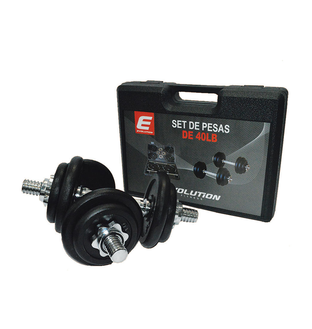 Espectacular Set de Mancuernas y barras para que complementes tu entrenamiento de la mejor manera. Incluye 2 barras estriadas, 4 collares spinlock, 4 placas de 4 Lb, 4 placas de 3 Lb y un práctico estuche para protección y transporte. Fabricado en materiales de alta calidad.