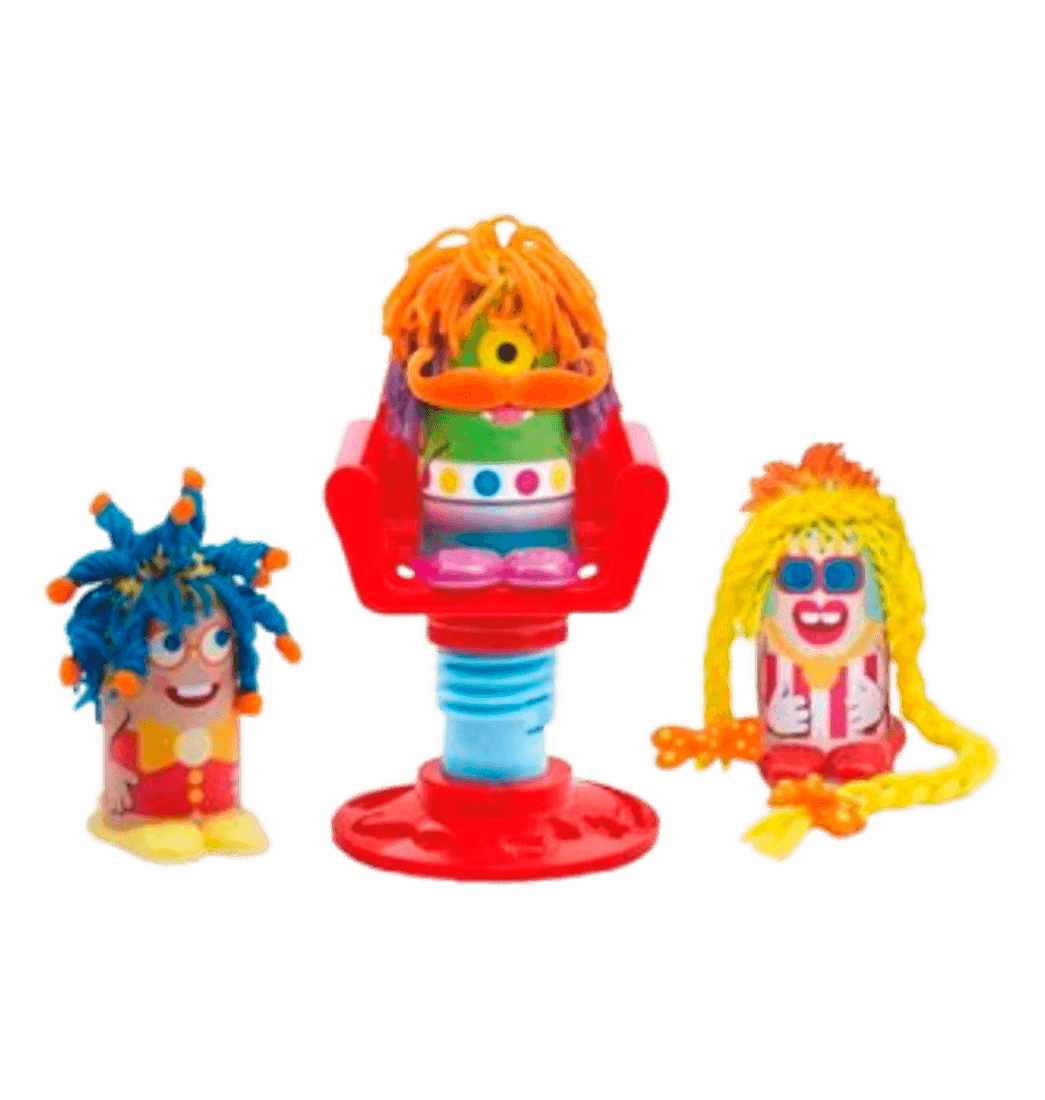 Incluye: 4 botes de masa de 84 g, 1 silla, 1 tornillo, 1 base, 4 tubos, 1 hoja de pegatinas, 1 par de tijeras, 1 peine, 1 herramienta de corte y 1 herramienta de afeitar.