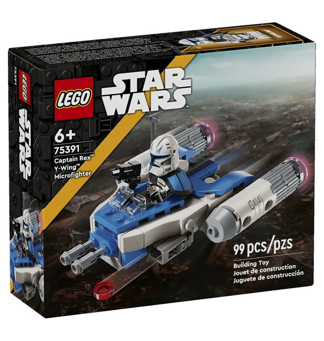 Anima a tu peque a unirse a los populares personajes de Star Wars: La Guerra de los Clones en las misiones de sus juegos con la nave espacial de juguete para construir LEGO Microfighter: Ala y del Capitán Rex. Este juego incluye el primer modelo LEGO Star Wars del Y-wing del Capitán Rex.