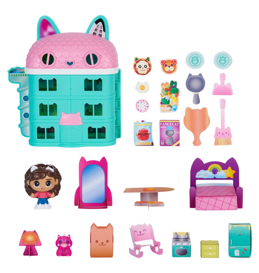 Conoce el Set de juego pequeña casa de gabbys dollhouse ¡es hora de ponerse diminuto! ¡con su forma inspirada en un gato y detalles coloridos, la casa gabby's dollhouse se parece a la del espectáculo! Sorprende a los más pequeños de casa con esta fantástica casa de muñecas para niños!.