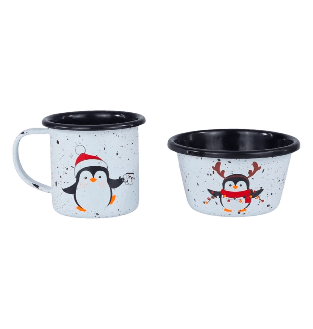 Set Navidad Pinguis Mug y Bowl en Acero Esmaltado - Macuira