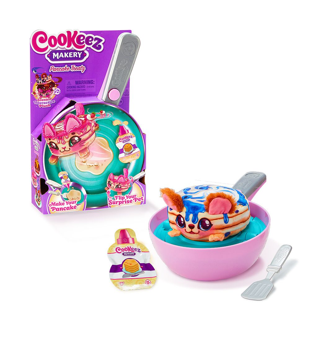 Cookeez Makery te sorprenderá cuando le des la vuelta a un mejor amigo de peluche sorpresa. Mientras volteas la masa para pancake en la sartén, descubrirán tu propio amigo de peluche interactivo perfumado en forma de un delicioso pancake con olor.