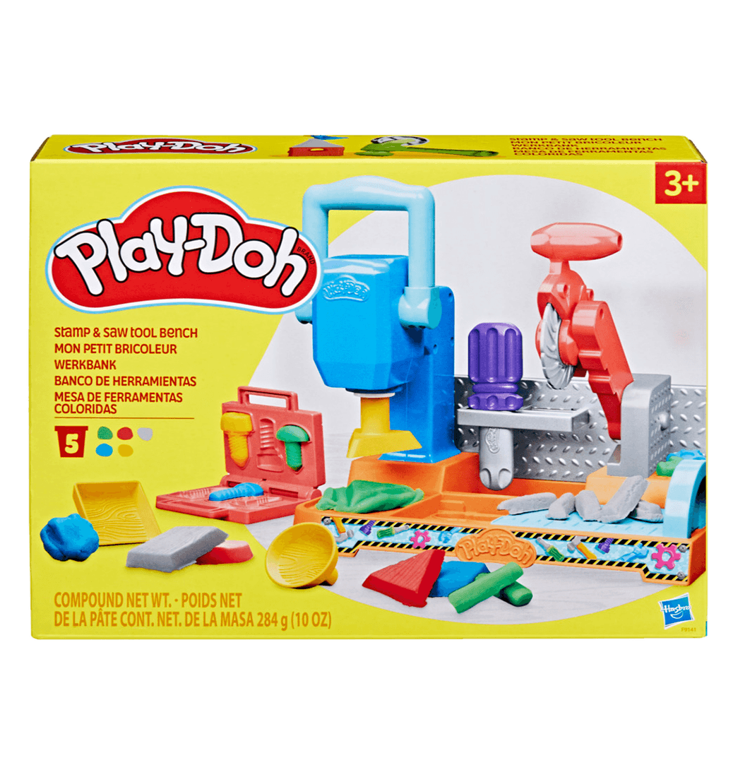 El banco de herramientas para sierras y sellos Play-Doh es un taller de imaginación en una caja! Los niños pueden jugar a ser carpinteros con el estampador y la hoja de sierra incorporados, además de herramientas Play Doh adicionales.