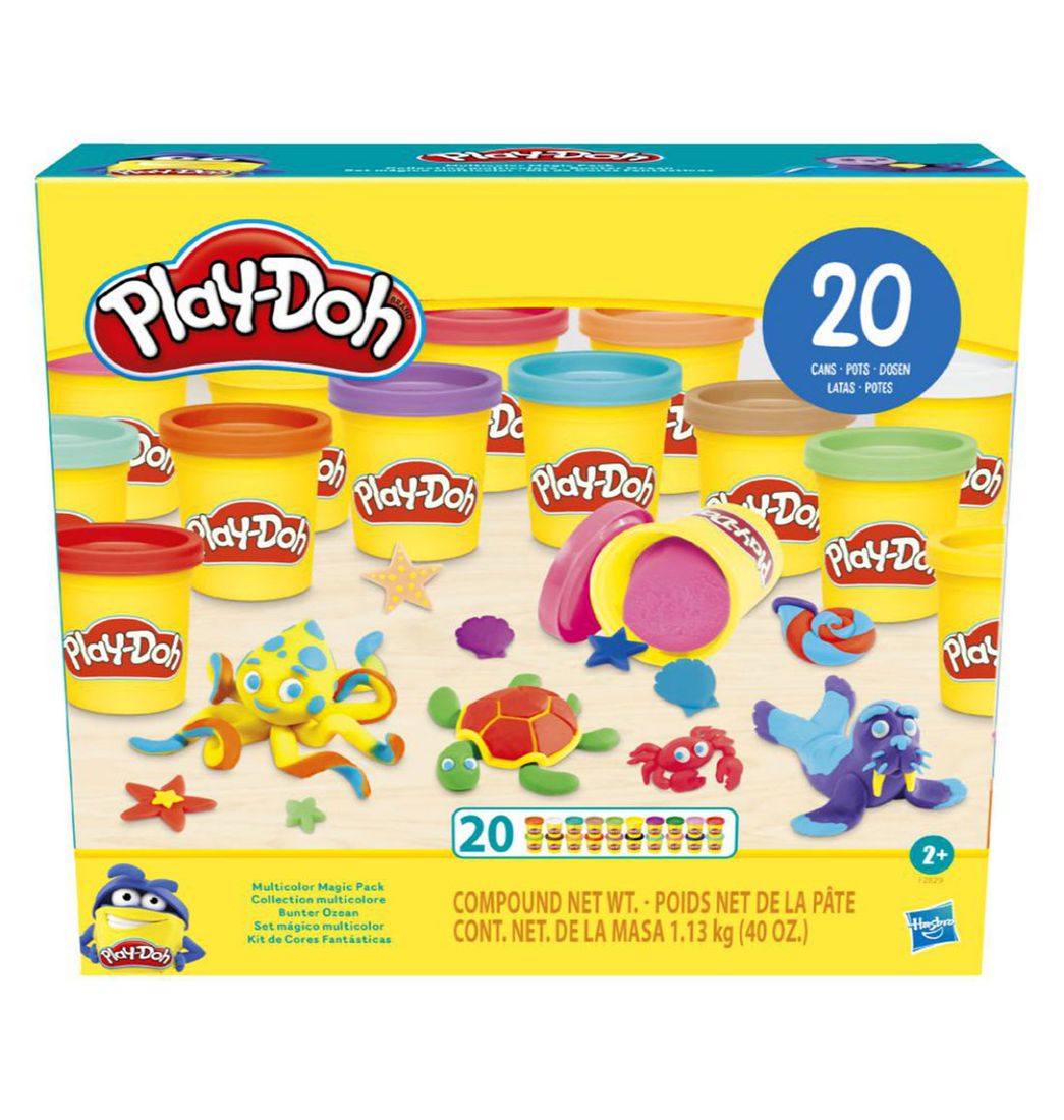 ¡Jugar con masa para moldear Play-Doh es incluso más divertido con 20 colores! El Set mágico multicolor viene con 20 latas de 56 gramos cada una, llenas de colorida y blanda masa para moldear Play-Doh no tóxica.