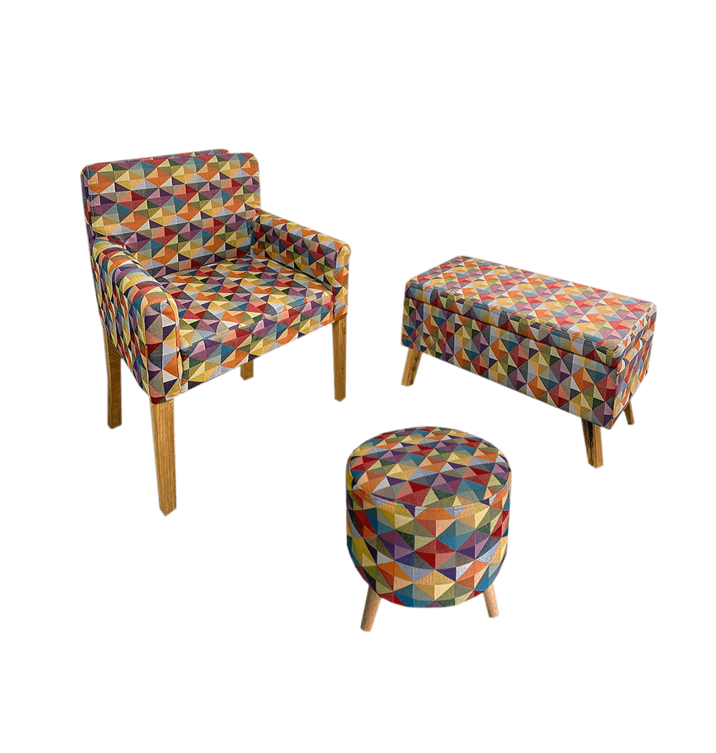 Set Poltrona + Banqueta Baúl + Puff Colors - Dko Design