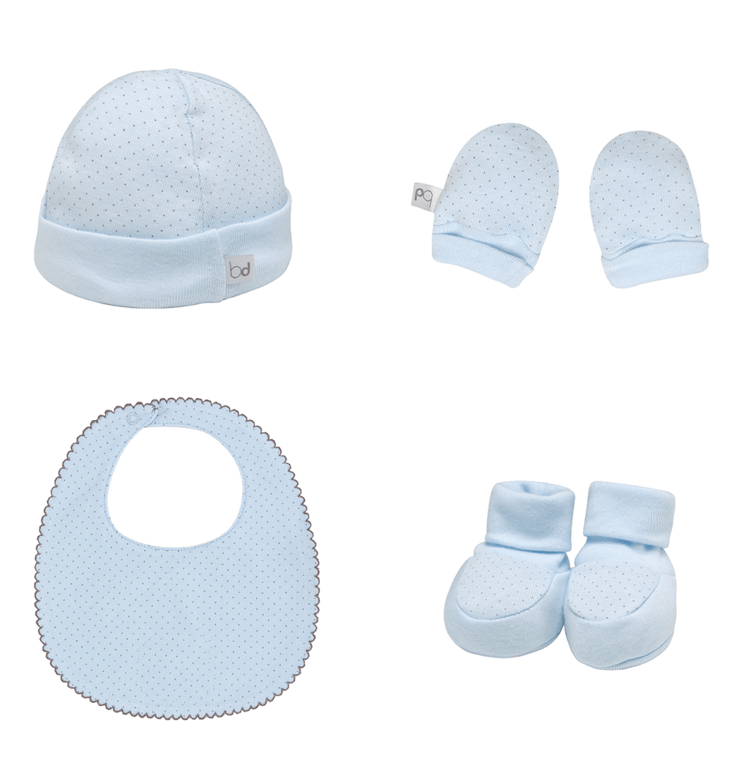 Set Primer Día 4 Piezas Gorro, Babero, Guantes y Patucos Niños - Monbaby 0-1M