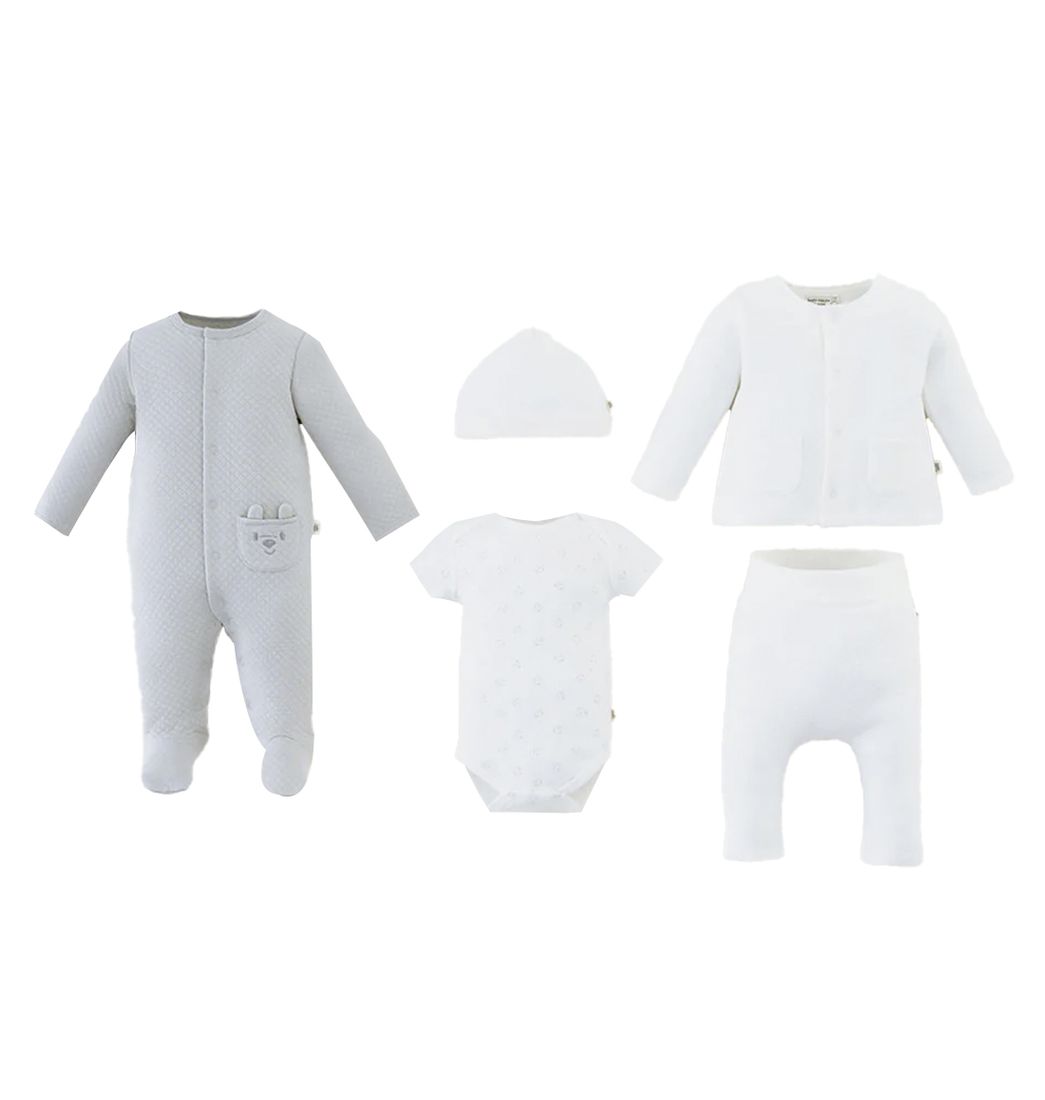 Este completo set incluye buzo, pantalón, pijama, body y gorro, pensado especialmente para brindar comodidad y suavidad desde el primer día. Además, esta confeccionado en tela delicada y agradable al tacto, ofrece abrigo ligero y libertad de movimiento para tu recién nacido. ¡Anímate y adquiérelo ahora!.