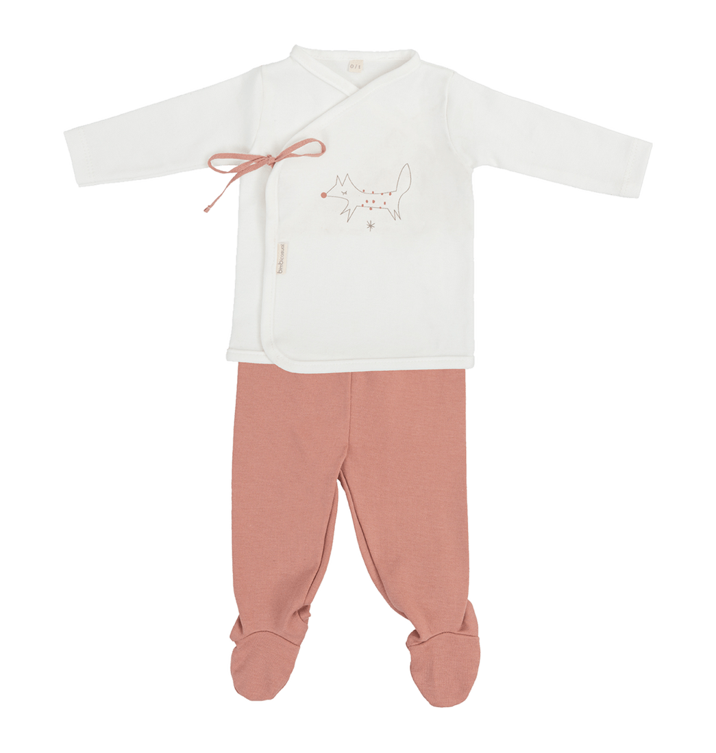 El conjunto de camiseta y polaina Fox de Monbaby está diseñado para ofrecer bienestar, suavidad y libertad de movimiento en los primeros días. Esta confeccionado 96% algodón orgánico y 4% elastano, el cual cuida la piel más delicada aportando elasticidad y transpirabilidad.