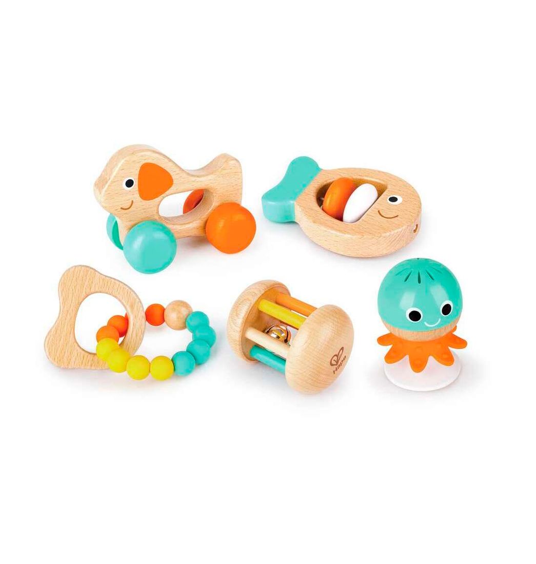 Este fabuloso set de juguetes crece con tus pequeños, y lo mejor es que ayuda en el desarrollo en cada paso del proceso. Incluye sonajeros y mordedores para bebés, un sonajero para cuando sean lo suficientemente grande para la mesa, y un cachorro rodante y sonajeros para cuando empiezan a ser independientes. ¡Sorprende a tu hijo y anímate a llevarlo ahora!.