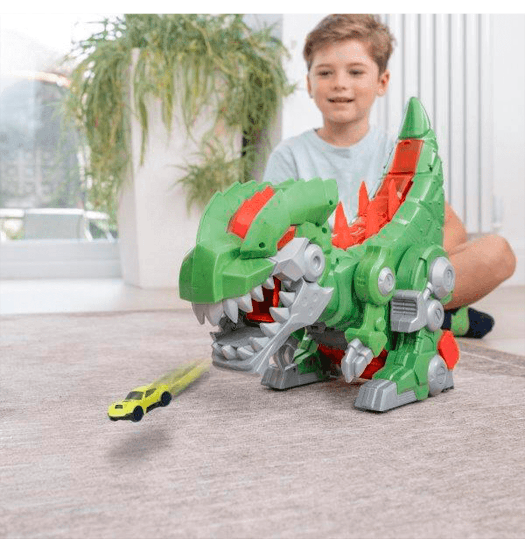 Domina la pista con el Teamsterz Mega Rex Robot, un impresionante robot con diseño de dinosaurio mecánico que lanza y captura vehículos. Incluye un coche die-cast y múltiples funciones interactivas para vivir batallas futuristas llenas de adrenalina.