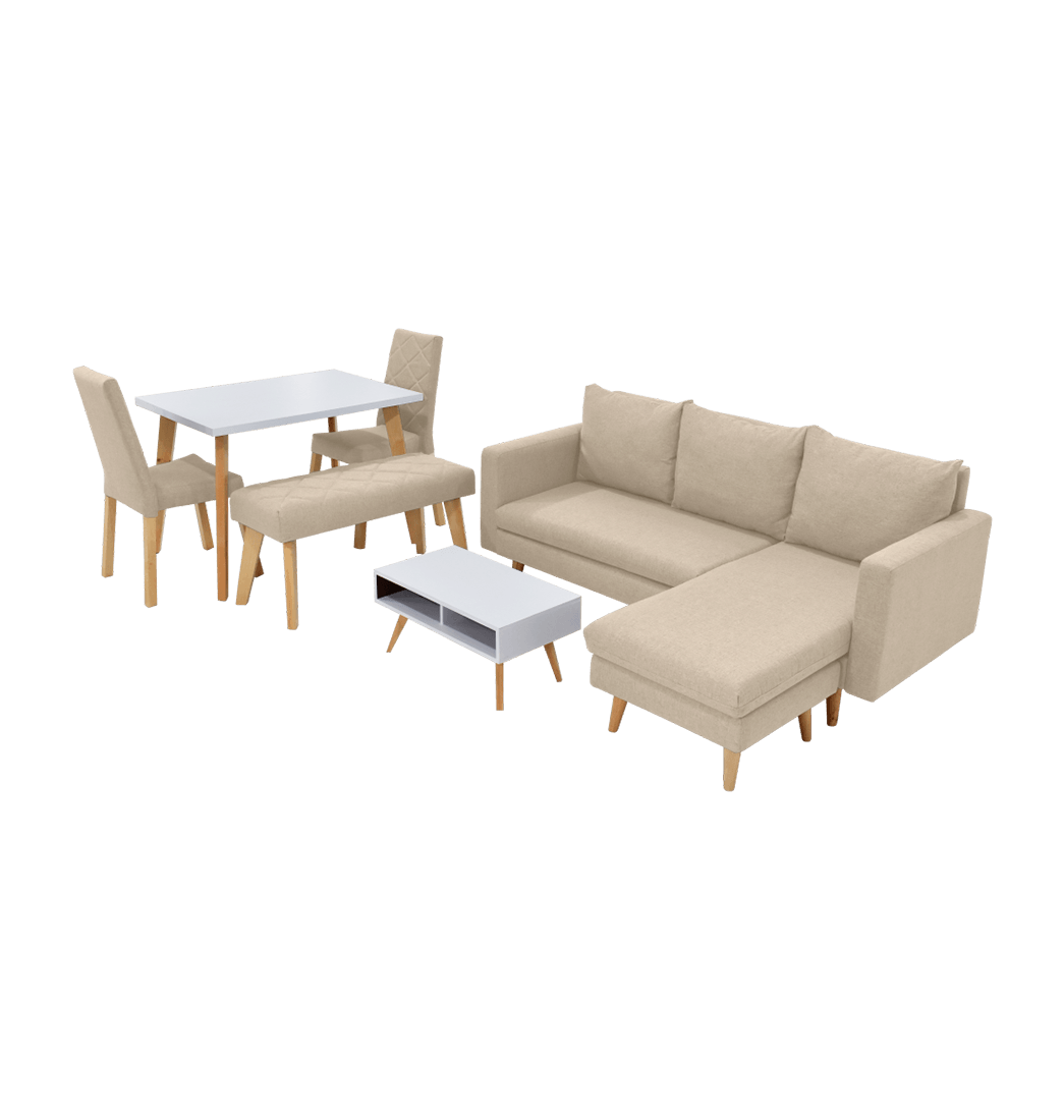Set Sala Barbados + Comedor Lugo Matiz 4P Sillas y Butaco Liverpool en Tela Beige - Hogar Venecia