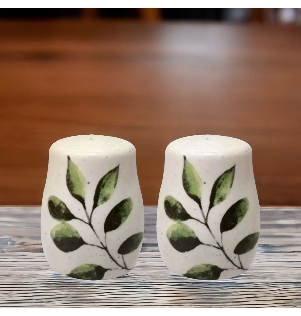 Set Salero y Pimentero Decorado Hojas Verde Blanco - Ikhome