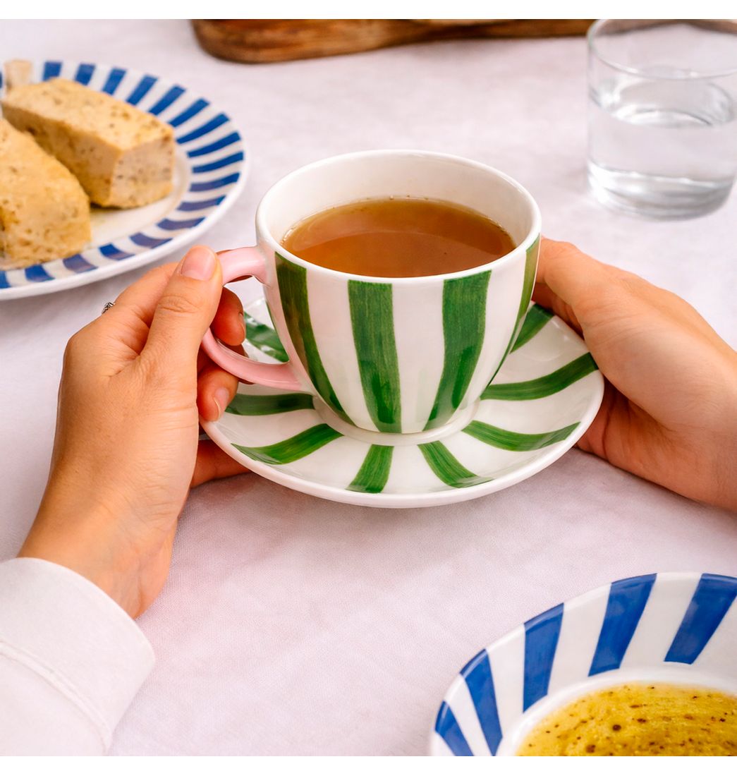 Set Taza y Plato Carnival Rayas Verdes 295ml - Ikhome