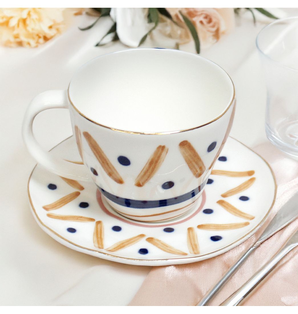 Este hermoso set consta de una taza y plato base, fabricados en porcelana de alta calidad con finos acabados, perfectos para tomar el té con la visita, o simplemente tomarse un café con tus familiares o amigos, ya que da un elegante y delicado aspecto gracias a su diseño. Es una excelente opción para regalar a todas aquellas personas amantes de este tipo de piezas de la cocina.