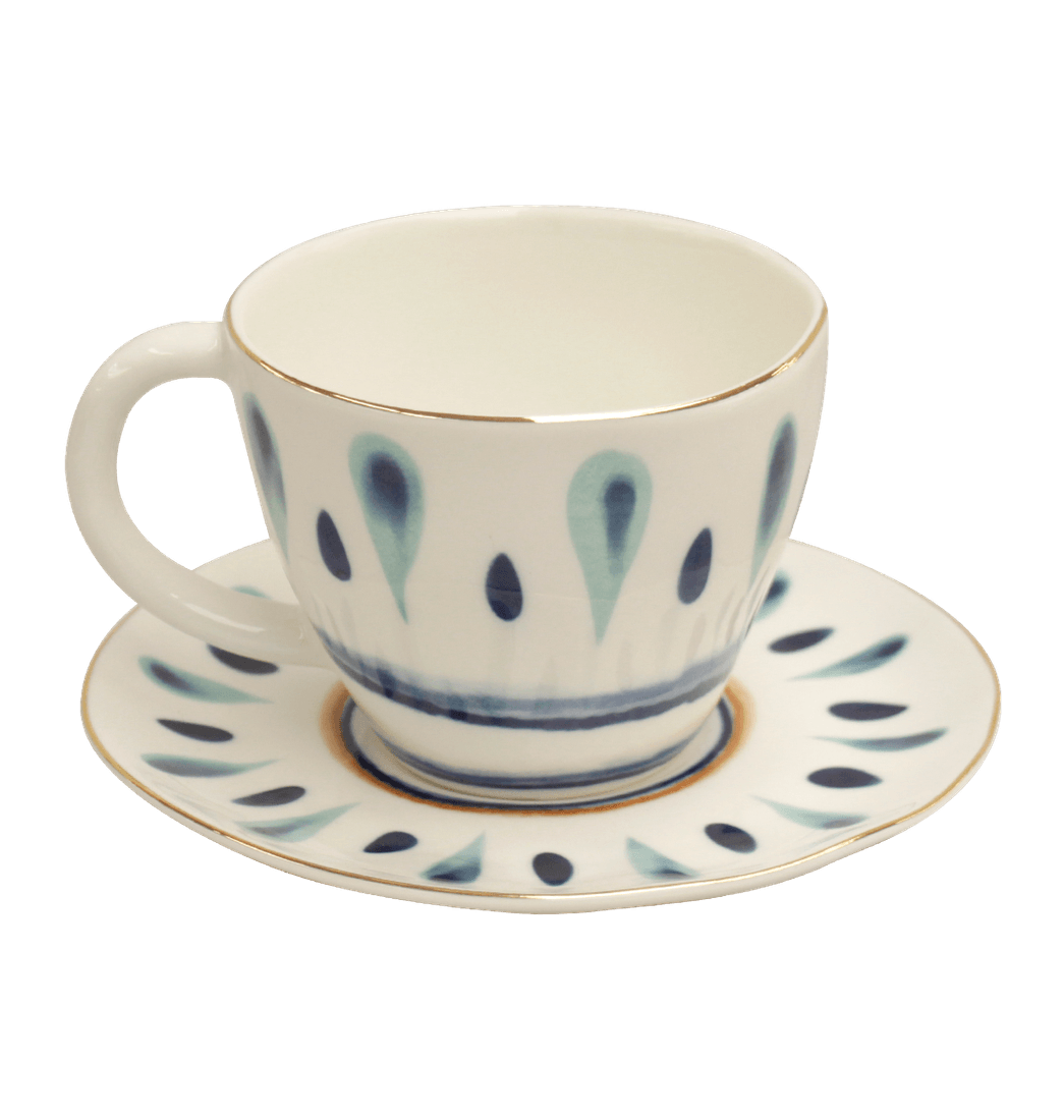 Este hermoso set consta de una taza y plato base, fabricados en porcelana de alta calidad con finos acabados, perfectos para tomar el té con la visita, o simplemente tomarse un café con tus familiares o amigos, ya que da un elegante y delicado aspecto gracias a su diseño. Es una excelente opción para regalar a todas aquellas personas amantes de este tipo de piezas de la cocina.