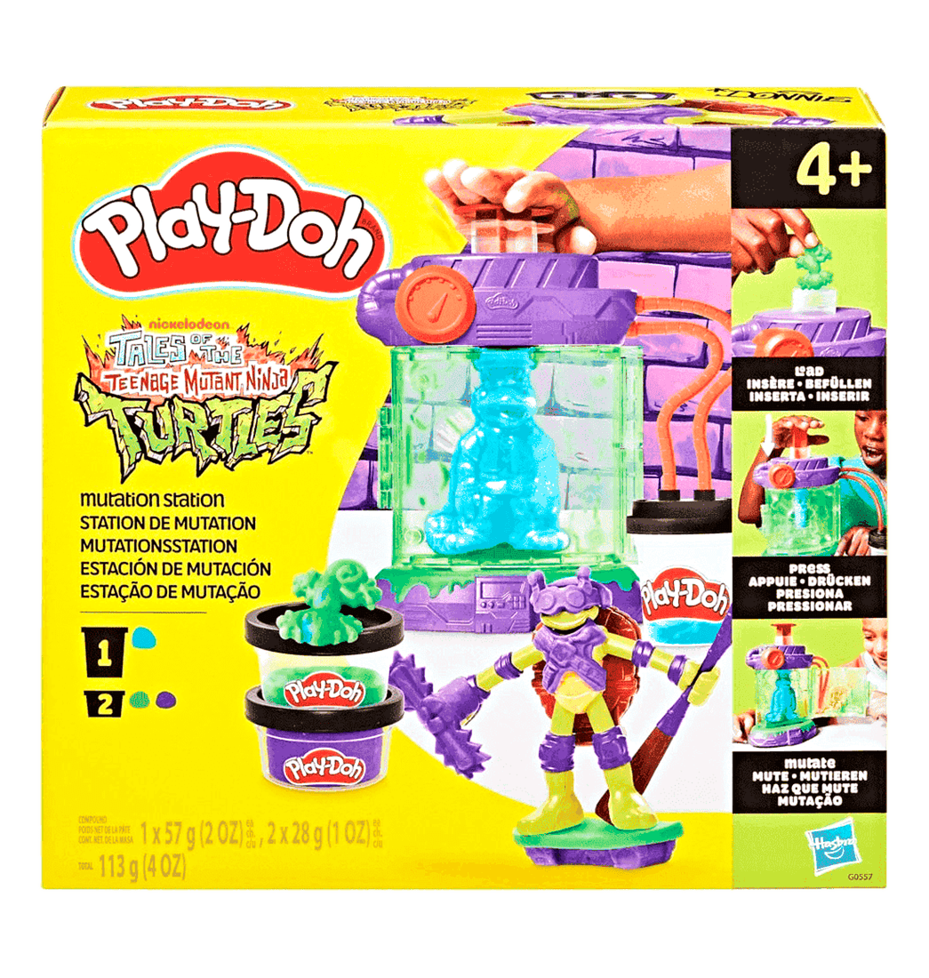 Incluye cámara de mutación, figura de Donatello, vara cuchillo y 3 botes de plastilina Play-Doh (total: 113 g).