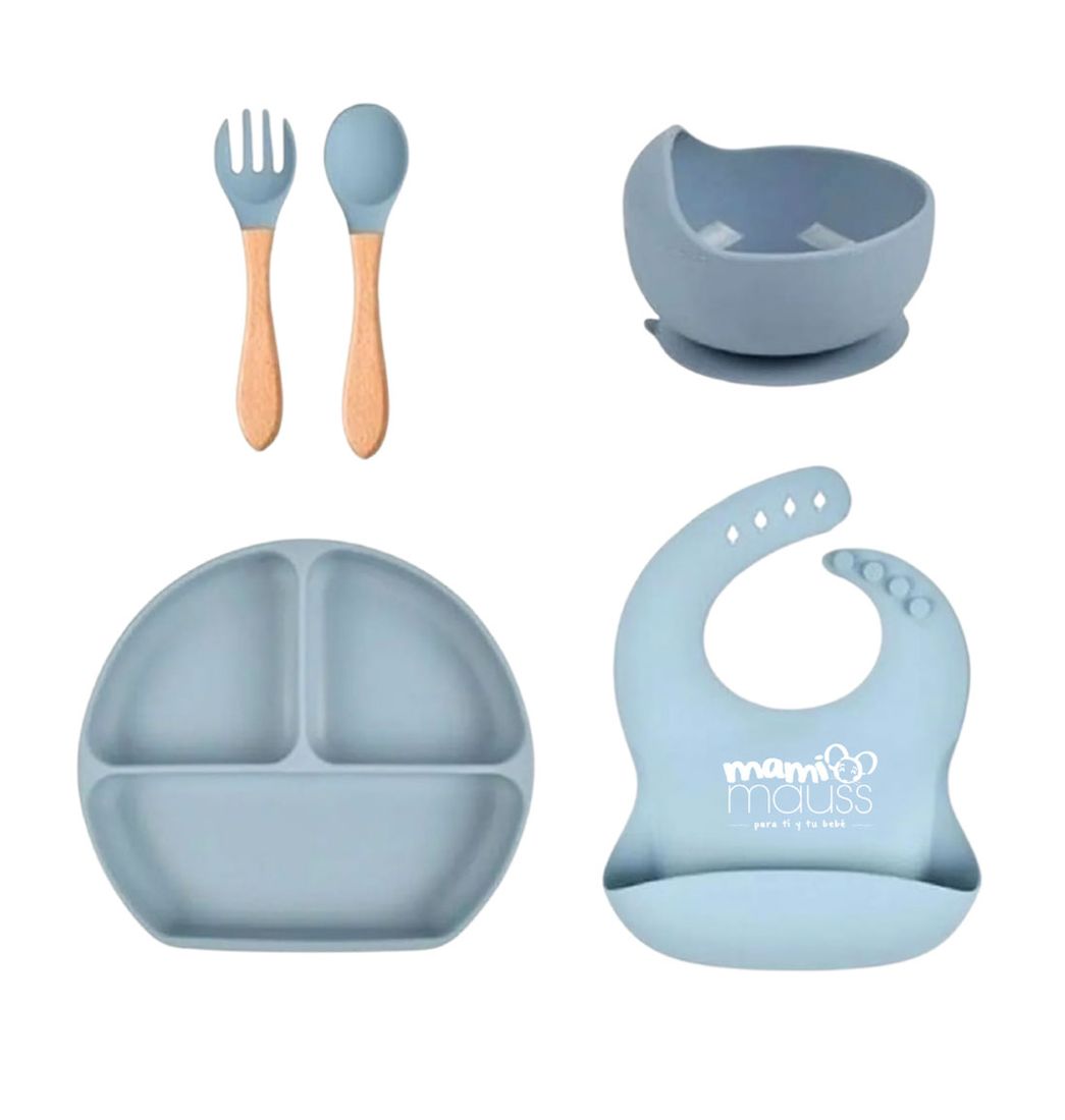 Set Vajilla Bebé Alimentación Complementaria Azul - Mami Mauss