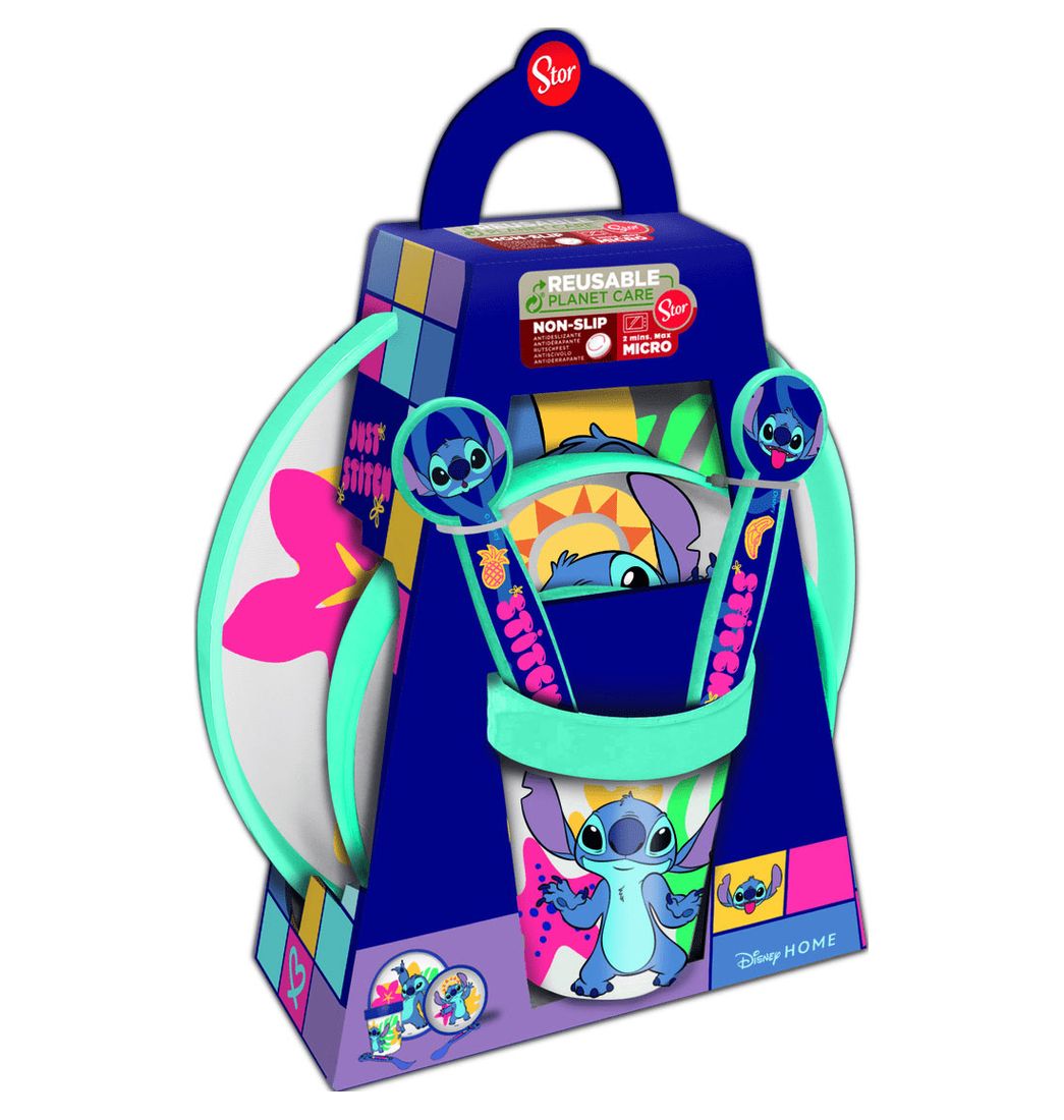 Con esta fantástica Vajilla tu pequeña tendrá todo lo necesario para que la hora de comer sea siempre divertida y cómoda. Este práctico Set incluye un plato, un cuenco, cubiertos y un vaso, los cuales tienen un tierno y llamativo diseño de Stitch que seguro le encantará a tu hija. ¡No esperes más y llévalo ahora!.