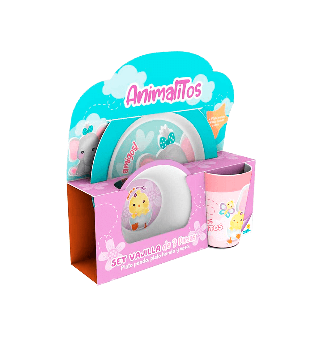 Set Vajilla Infantil 3 Piezas Melamina Animalitos - Ronda