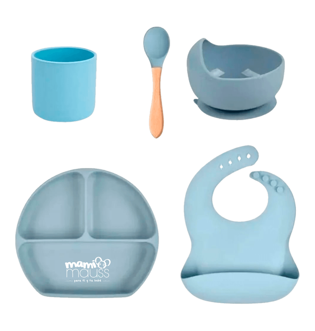 Set Vajilla para Bebés Alimentación Complementaria Azul - Mami Mauss
