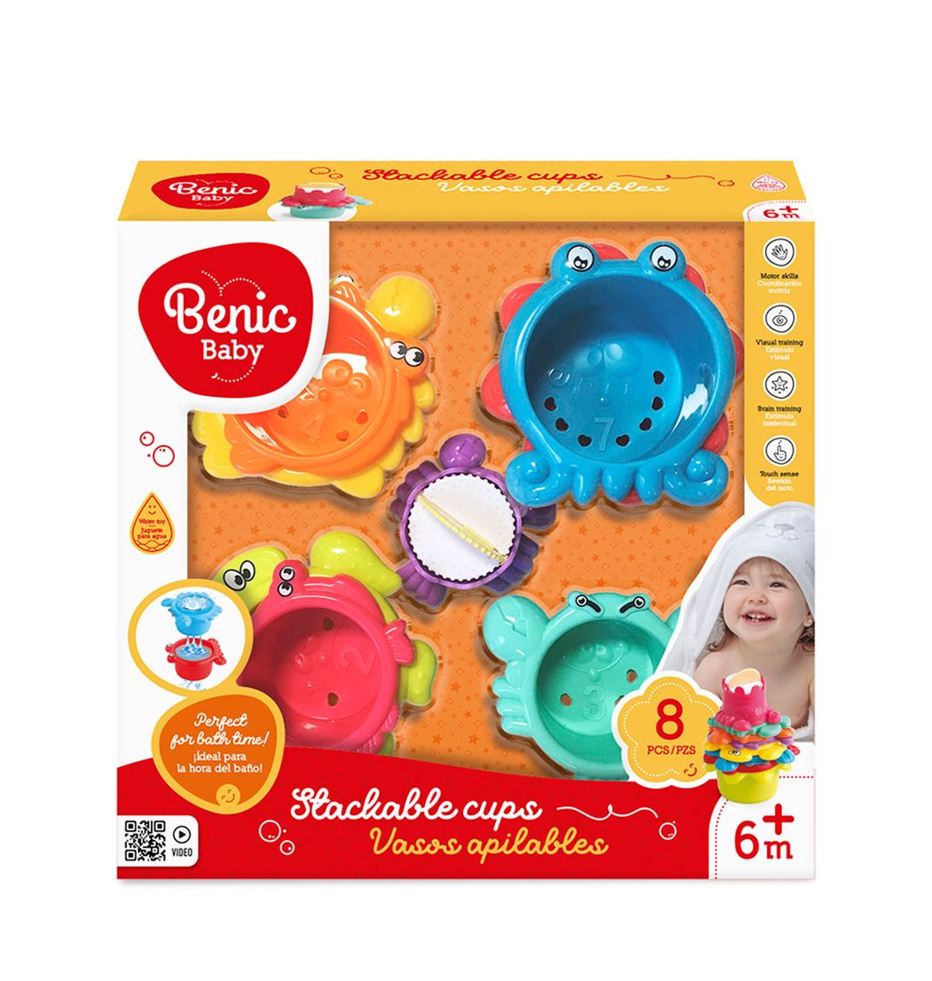 Lleva la diversión a la hora del baño con nuestras adorables tazas apilables! Diseñadas para bebés a partir de 6 meses, estas coloridas tazas entretendrán a los pequeños mientras se bañan.
