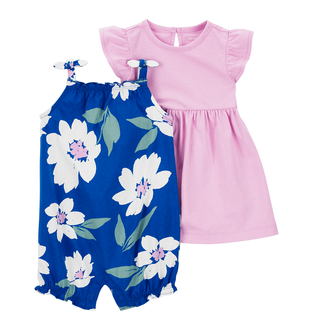 Set Vestido Rosado, Mameluco Flores y Calzón Bebés Niñas - Carter's
